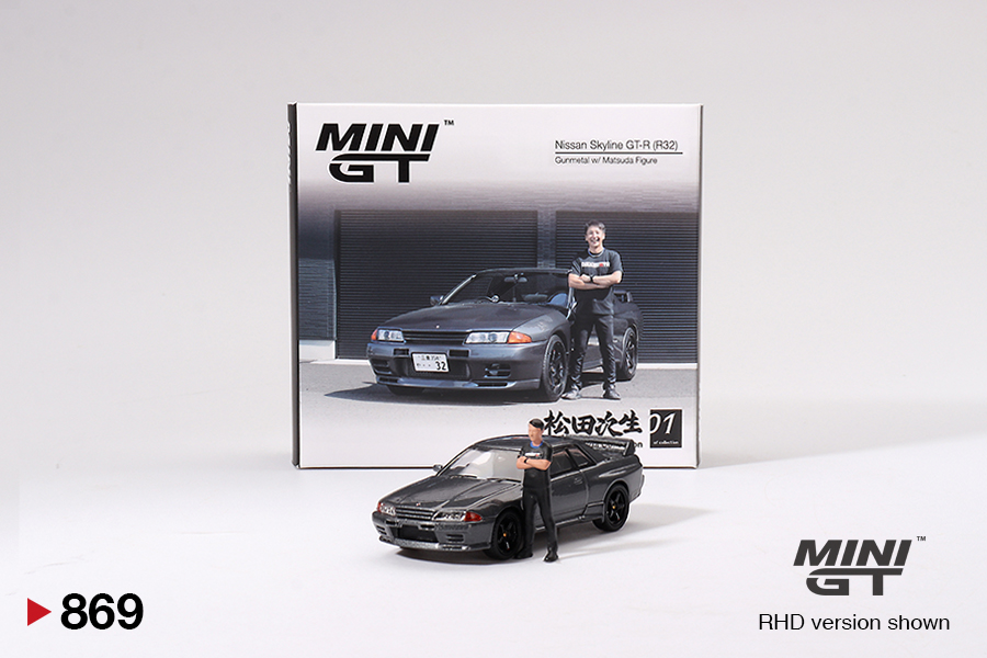 Mini GT 1/64 Nissan Skyline GT-R (R32) Gunmetal W/ Matsuda Figure Tsugio Matsuda Collection